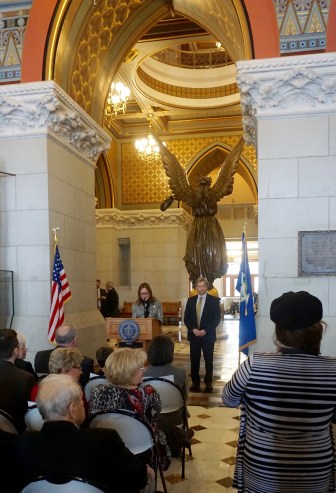 The job is not high profile or a traditional springboard to elective office. But Bates was sworn in by Secretary of the State Denise Merrill in front of an audience, as she noted, composed of “many dignitaries, both foreign and domestic.”