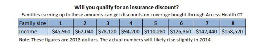 People who earn up to 400 percent of the poverty level will be eligible for a discounted insurance premium if they buy coverage through the exchange. The chart below shows what that translates to in dollars.