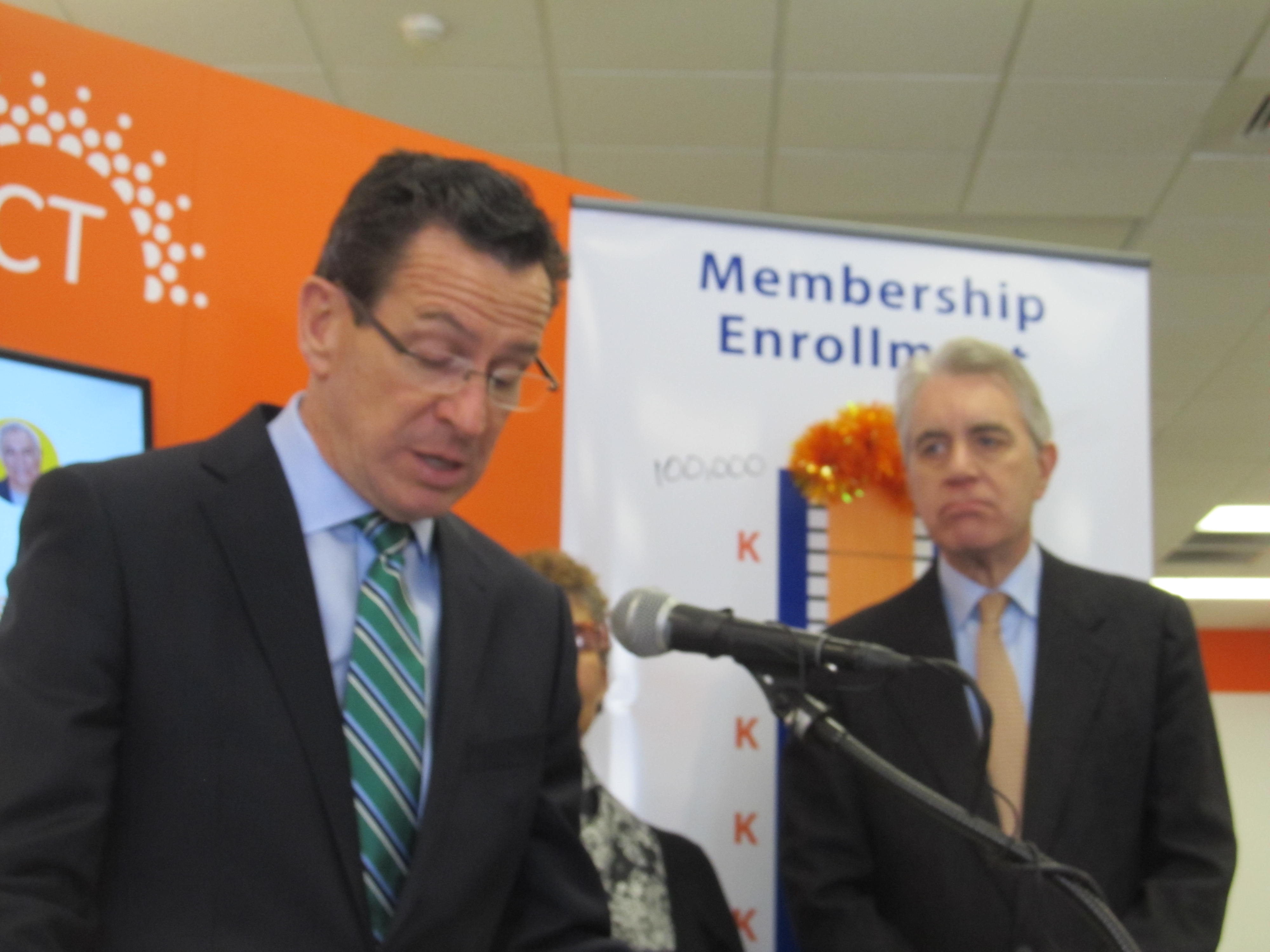 He spoke after an event at the South Park Inn, a homeless shelter in Hartford where he outlined a series of initiatives to end homelessness among veterans by the end of 2015. The day before, he was in New Haven to announce that Access Health CT, the state-run health insurance exchange, had met its enrollment goals seven weeks early. On Thursday, Malloy delivered televised storm briefings.
