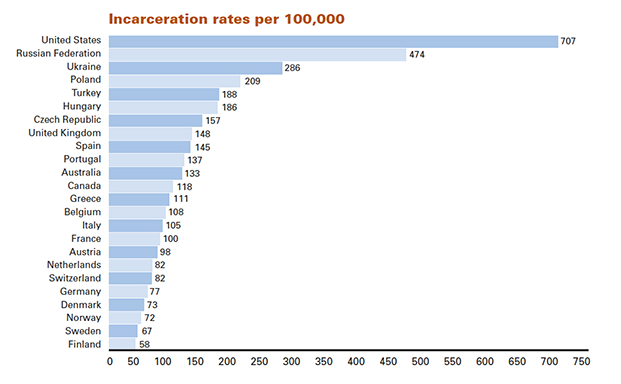 The U.S. now incarcerates more than 1.5 million people in state and federal prisons. The incarceration rate is the highest in the industrialized world, costing about $60 billion annually, up from $12 billion 20 years ago.