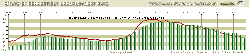 Gov. Dannel P. Malloy accentuated the positive: “We have now reached our pre-recession unemployment rate, a new and important milestone. While this month is comparatively flat, we’re no doubt seeing positive signs. We’re going to keep working each and every day to make even more progress and move Connecticut forward.”