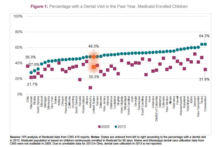 Between 2005 and 2013, the percentage of Connecticut children covered by Medicaid who visited a dentist in the previous year more than doubled, from 31.9 percent to 64.3 percent, according to a report by the American Dental Association’s Health Policy Institute.