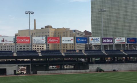 Dunkin’ Donuts Park is supposed to be the first phase of a broader project to redevelop land just north of I-84 in downtown Hartford, an area called Downtown North or DoNo. Alas, the project developer, DoNo Hartford LLC, an affiliate of Centerplan Companies, ran up a $10.4 million cost overrun and missed two deadlines this year to complete the stadium. After an email Friday indicated the stadium was still two months or more from meeting city building codes, the umpire gave DoNo Hartford the thumb – Mayor Luke Bronin terminated the contract with the developer on Monday.