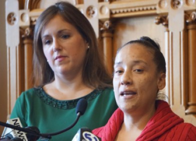 Yvonne Rodriguez of Hartford said she needs public assistance to get by despite working two jobs, each paying her $10.10 an hour. She said she performs home care as a certified nursing assistant and also works 20 hours a week at Dunkin Donuts.