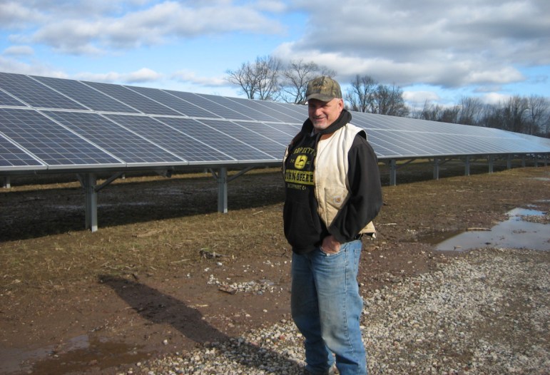 Without the income he now gets from leasing his field so it can generate two megawatts of renewable power for a nearby town, “I’d be done,” he said. “There’d be eight houses on this piece. I have to do something with my land if I want to survive.”