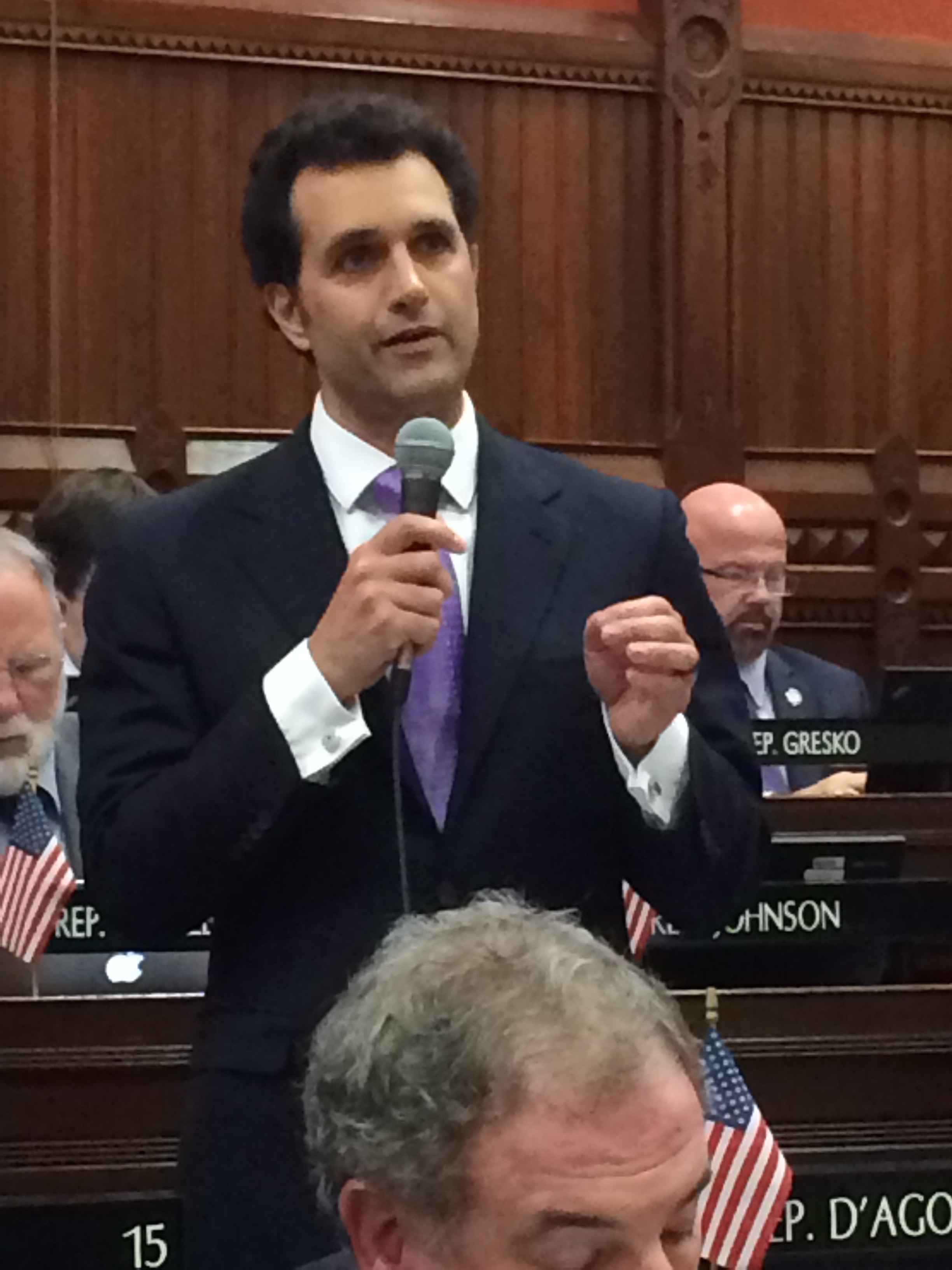 Rep. Mike D’Agostino, D-Hamden, discusses union concessions deal on House floor. Credit: Keith M. Phaneuf / CTMirror.org