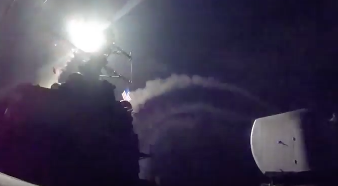 The guided-missile destroyer USS Porter launches cruise missile against Syrian air base.