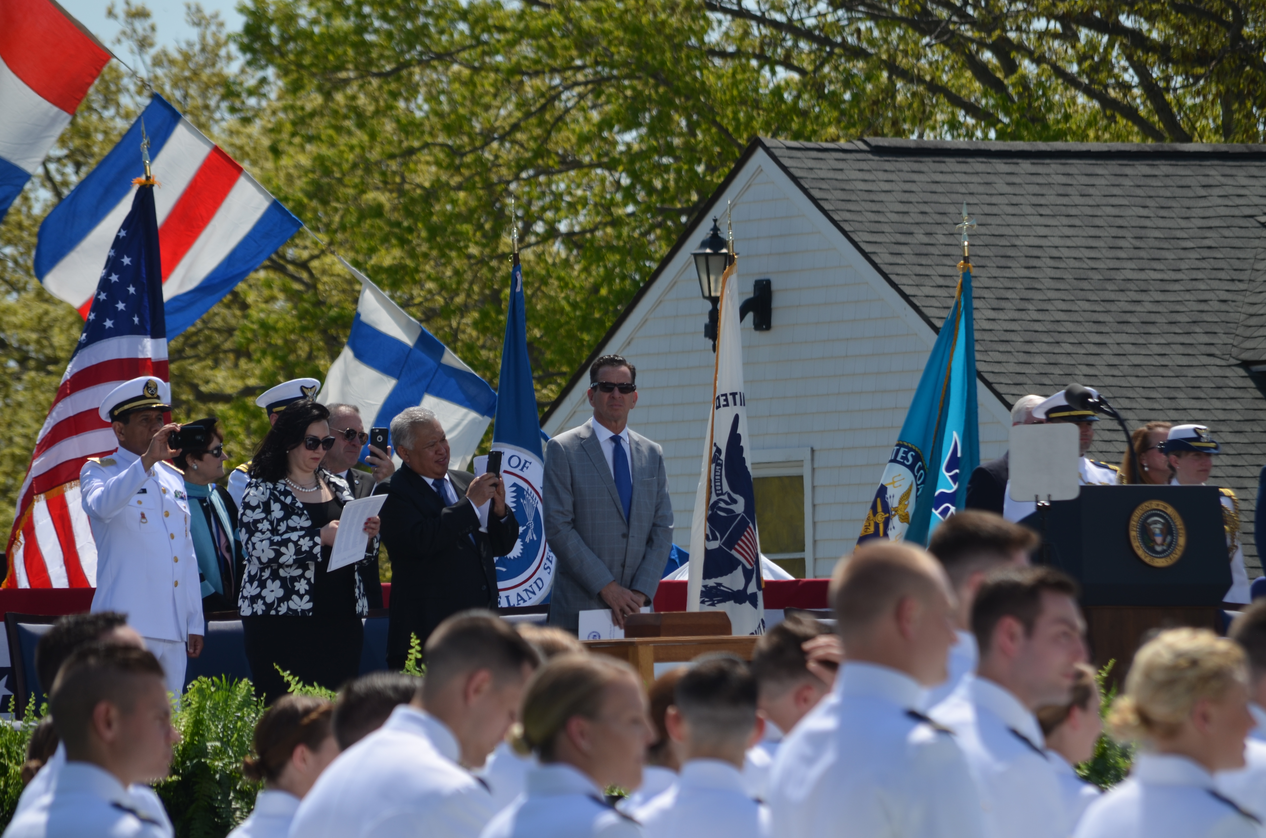 “We have out-muscled the Air Force Academy, West Point and Annapolis, because we have landed our commander-in-chief to preside at this day’s commencement,” Zukunft said.