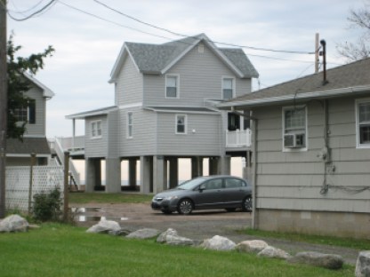 After Irene, East Haven’s prized Cosey Beach was piled with debris where homes had stood. Since then, more than 50 homes have been elevated, so now Cosey Beach Avenue, the street that runs closest and parallel to the water, is a mixture of sky-high homes and old beach cottages still sitting right on the sand.