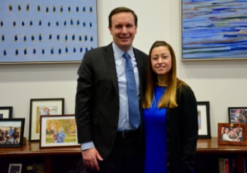 Murphy invited Caroline Johnson of New Britain to witness the speech. Johnson is an advocate for early cancer screening and research funding whose husband, Scott Johnson, a New Britain firefighter and a chief petty officer in the U.S. Coast Guard, died of colorectal cancer last year.