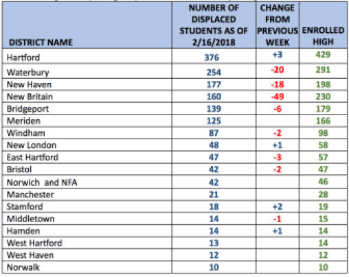 According to the Connecticut Department of Education, there were 1,745 displaced students in Connecticut schools as of Feb. 16.