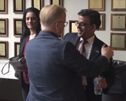 Boughton embraced his fellow candidate, Rep. Prasad Srinivasan of Glastonbury, an allergist and one of three doctors who aided the mayor after he collapsed in Avon. Boughton quietly thanked Srinivasan before the start of a Republican Town Committee meeting here, then posed for a picture by Srinivasan’s wife.