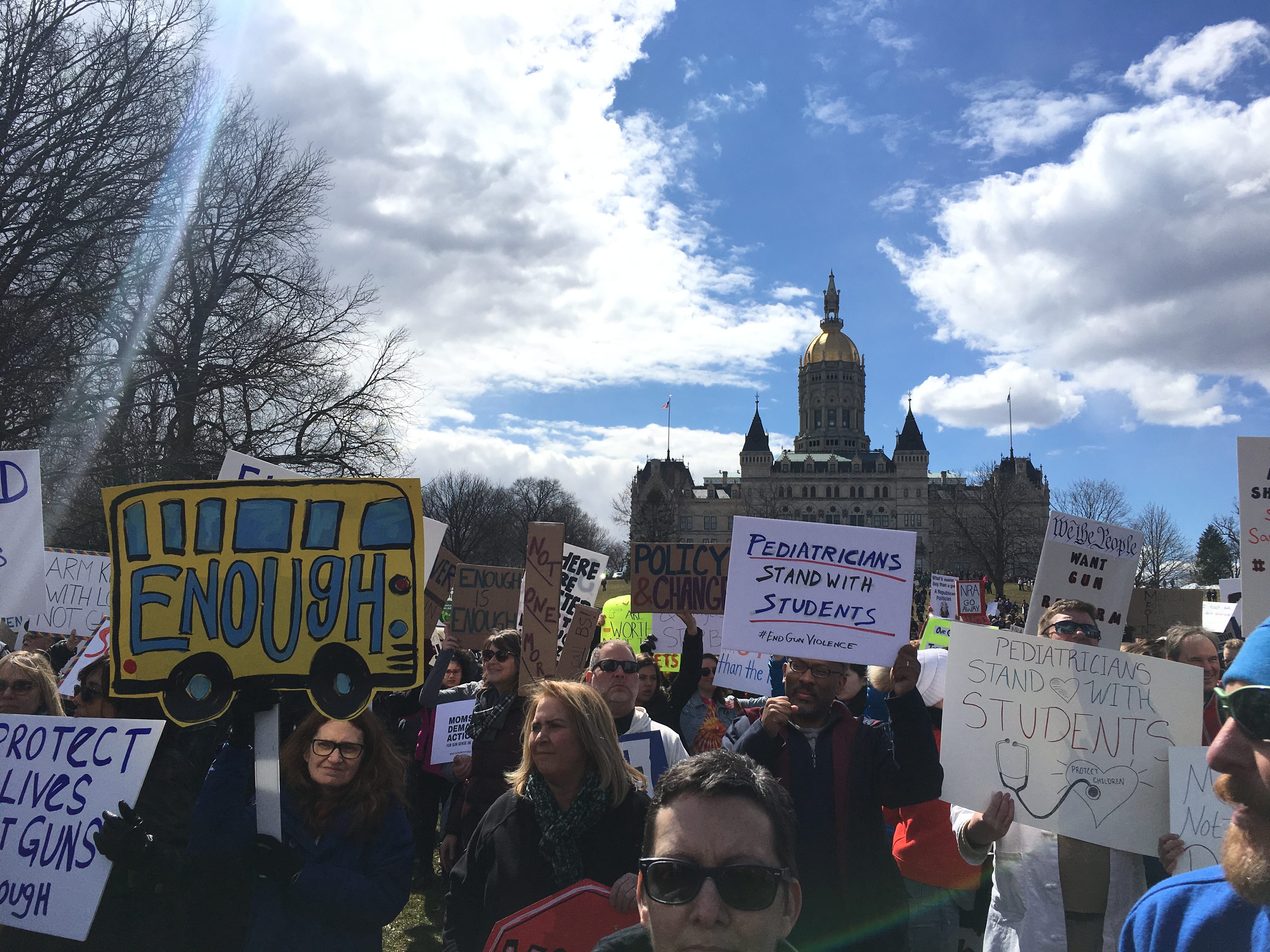 Thousands of students, parents, residents and activists poured onto the north steps outside the Connecticut Capitol Saturday to join marchers across the nation in calling for an end to gun violence.