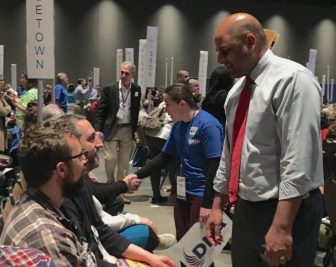 The endorsed Democratic ticket of six statewide constitutional offices includes the first Asian endorsed for statewide office, William Tong for attorney general; the state’s first openly gay statewide officer, Comptroller Kevin Lembo; and Wooden. The others are Lamont, Bysiewicz and Secretary of the State Denise Merrill.