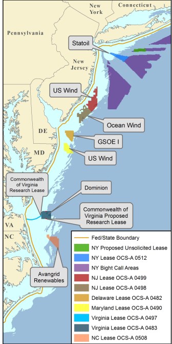 There are lease areas under active development off New Jersey, Delaware, Maryland, Virginia, North Carolina and South Carolina.