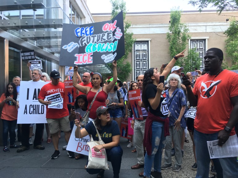 The rally outside the local U.S. Immigration and Customs Enforcement offices drew protestors of all ages chanting “abolish ICE” and “here to stay” amid music by the Hartford Hot Several brass band. The Hartford rally was part of a wave of protests in cities and towns nationwide calling for the reunification of families and an end to detention at the border.