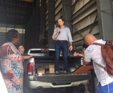 The truck was parked inside a cavernous shed where one boatyard used to overhaul ocean-going yachts and ferries, only to go bankrupt six years ago. But a new boatyard is coming, waterfront housing is under construction, and the possibility of a casino resort is just over the horizon. Ganim, wearing jeans and a dress shirt, promised good times are coming.