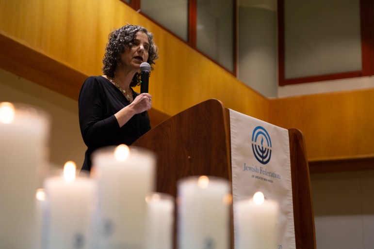 There, amid prayer and a candle lighting for each of the 11 people killed, faith leaders and speakers took turns encouraging Jews to continue gathering in the face of hatred and urging people to speak out against anti-semitism.