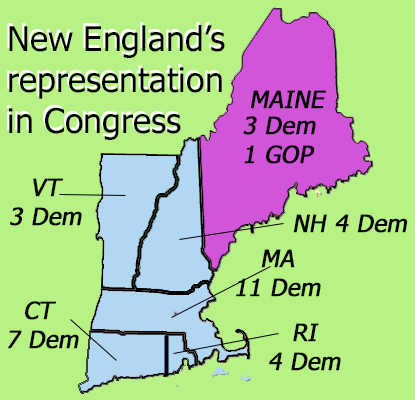 Connecticut has not had a Republican representative in Congress since 2009. Now it appears that all but one of the six New England states — Maine — will have all-blue congressional delegations.