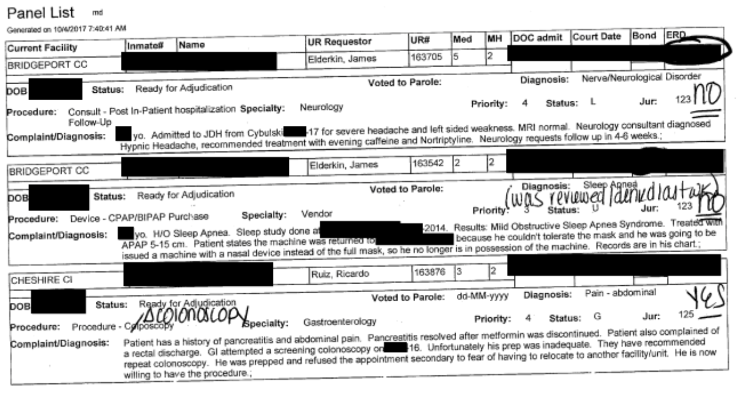 UConn Health officials warned against drawing any conclusions about whether the “yes” or “no” markings that adorn the doctor’s requests to the panel meant the individual was approved to receive care, but believe that’s what the notes meant.