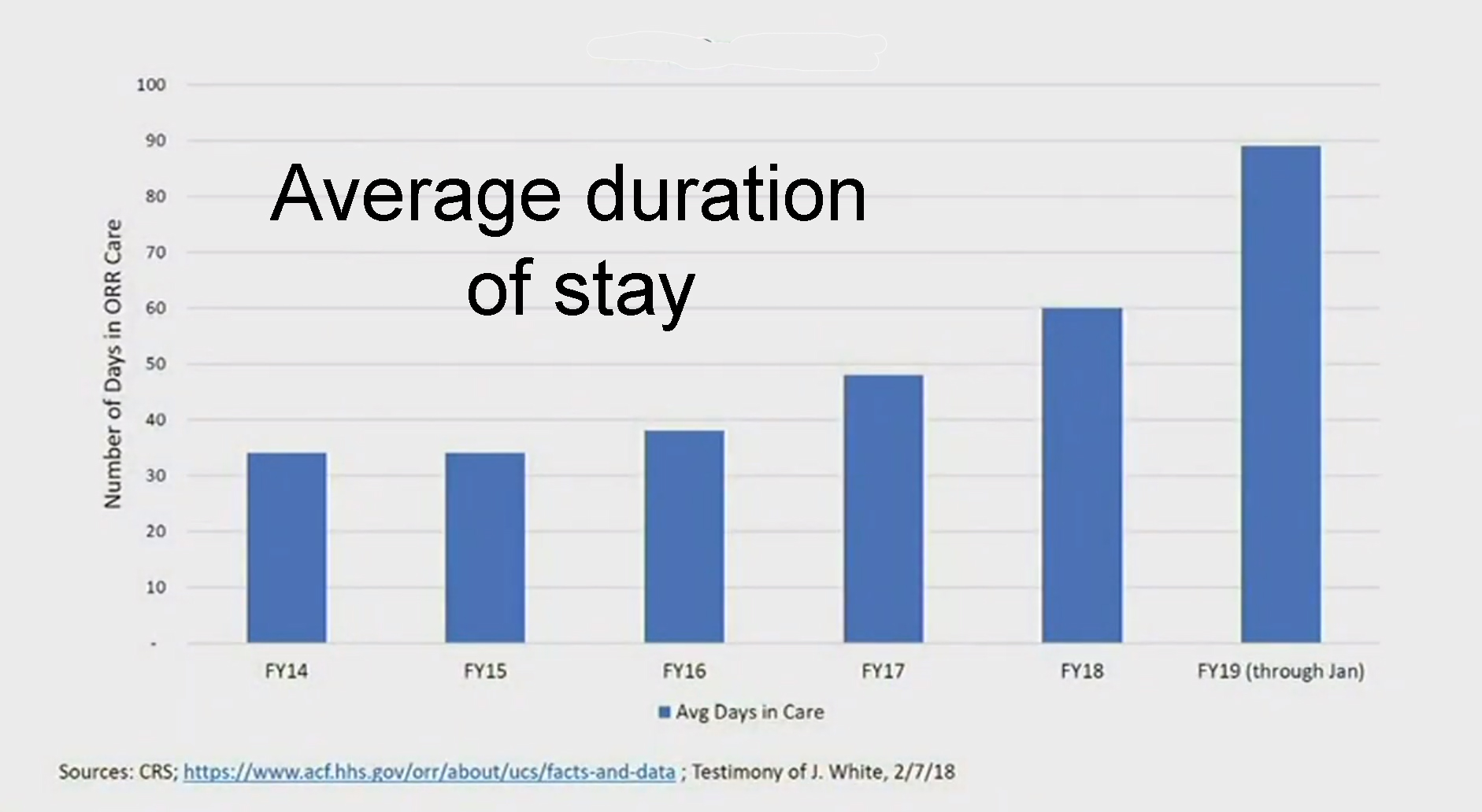 DeLauro-hearing-average-duration-of-stay A chart submitted as evidence Wednesday shows the average length of a migrant child’s stay in U.S. custody.