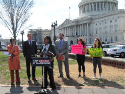 But the senators’ chief purpose in holding a press conference Thursday was to introduce a resolution that would clarify that federal education dollars can’t be used by schools to arm teachers.
