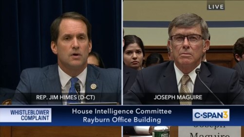 “Did you speak to the president about the complaint?” Himes, 4th District, asked during a high-profile hearing of the House Intelligence Committee on the complaint that Trump pressured the Ukrainian president to investigate former Vice President Joseph Biden and his son, Hunter.
