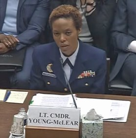 Young-McLear testified about the toll caused by five years of trying to get an adequate response from the Coast Guard to her complaints, which were not fully addressed until the inspector general took up her case.