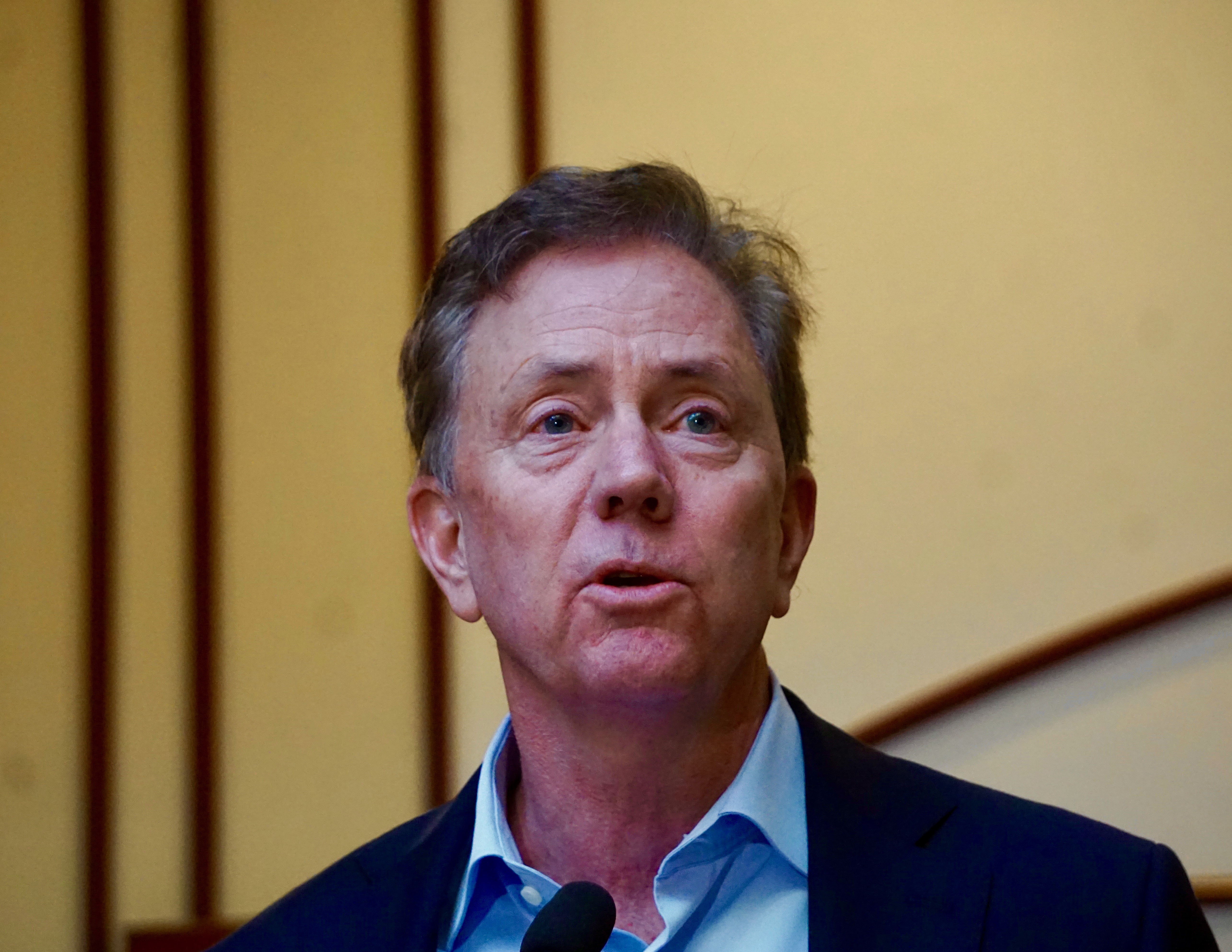 Gov. Ned Lamont talking to reporters after the Bond Commission. Credit: mark pazniokas / ctmirror.org
