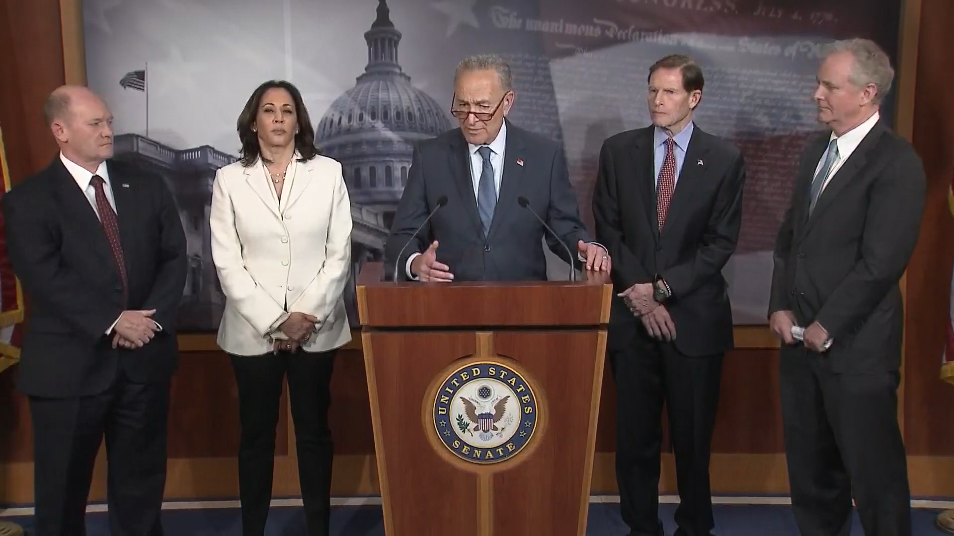 Sen. Richard Blumnethal joins fellow Democrats Chris Coons, Kamala Harris, Chuck Schumer, and Chis Van Hollen in demanding witnesses at Trump's impeachment trial.