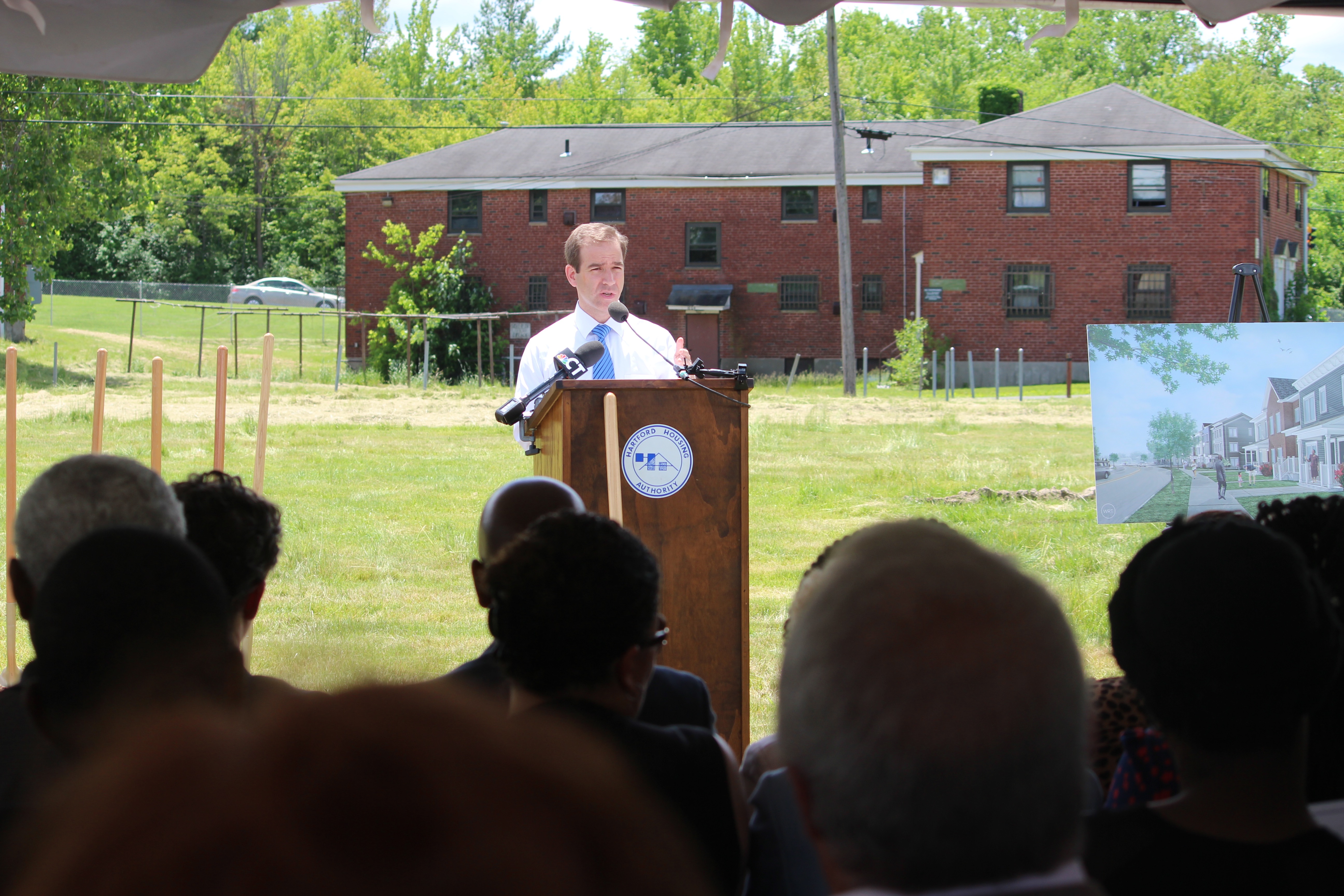 As Bronin made these remarks Friday during a press conference calling on the U.S. Department of Housing and Urban Development to focus on “breaking up concentrations of poverty,” federal lawmakers, housing advocates and those who live in the neighborhood interrupted with cheers.