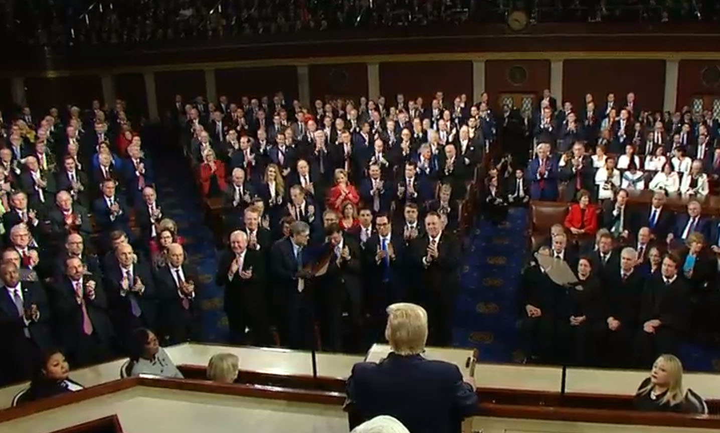 He also recognized Venezuelan opposition leader Juan Guaido as “the true and legitimate president of Venezuela,” eliciting a rare moment of bipartisan applause.