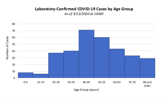 Ages 60-to-69 ranked third with less than 45 cases while 30-to-39 had approximately 40 cases.