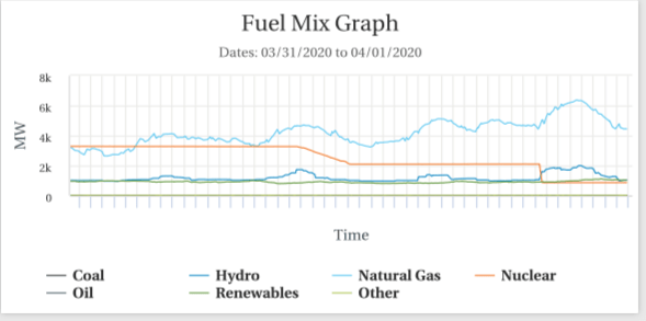 As of Friday noon, the grid mix showed nuclear at 8% and natural gas at a whopping 68%.