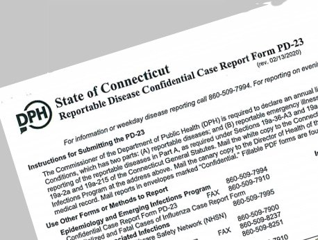 reportable disease form Instructions on the DPH form used for providing information on reportable diseases, including COVID-19.