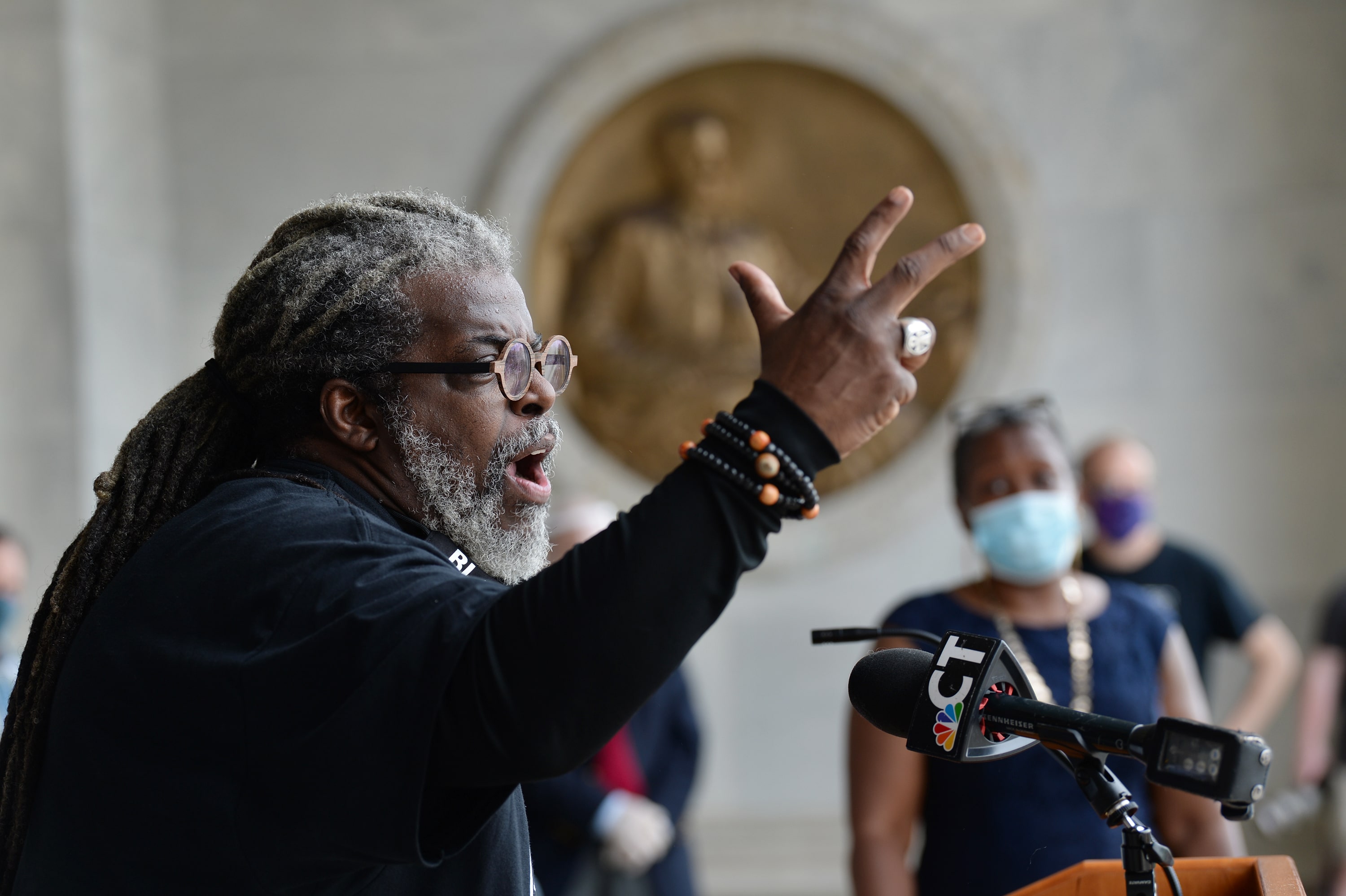 The Rev. Kelcy Steele, the first to speak, laid blame at the feet of President Donald J. Trump.