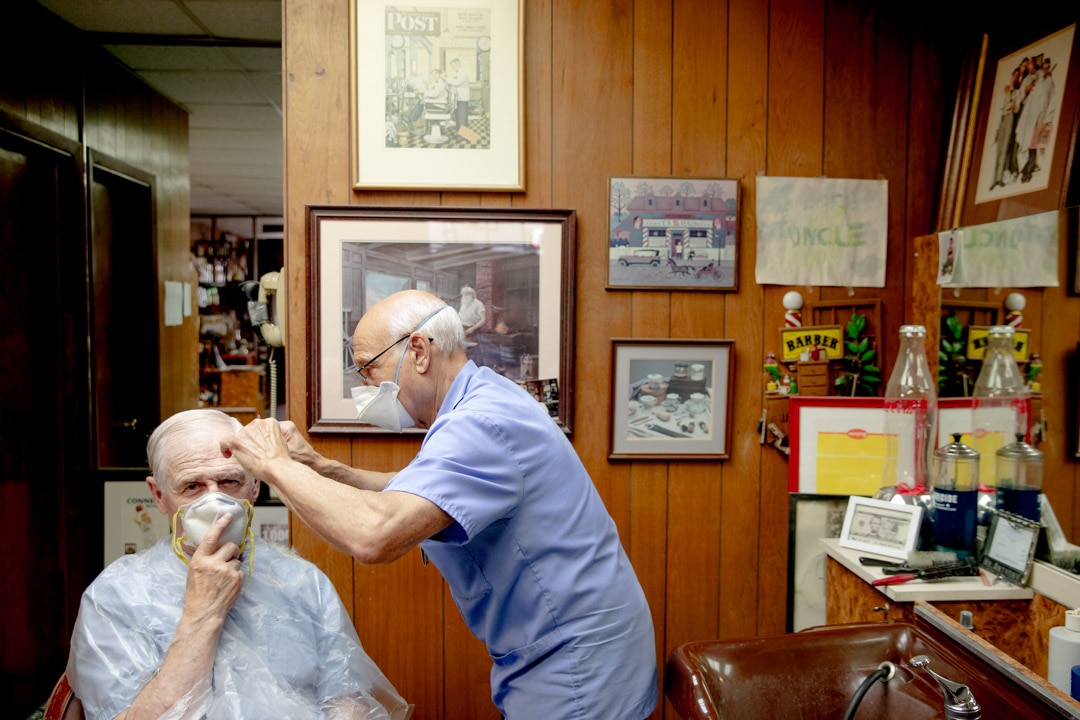 Tony Gugliotti, 82, cuts Guy Dessureauld’s hair on June 23 at Magic Shears in Waterbury. Since reopening his barbershop on June 1, Gugliotti has been working from 7 a.m. to 6 p.m. and is fully booked until the end of July. He lets one person into the shop at a time by appointment. Credit: Yehyun Kim / CT Mirror Tony Gugliotti, 82, cuts Guy Dessureauld’s hair on June 23 at Magic Shears in Waterbury. Since reopening his barbershop on June 1, Gugliotti has been working from 7 a.m. to 6 p.m. and is fully booked until the end of July. He lets one person into the shop at a time by appointment. Credit: Yehyun Kim / CT MirrorTony Gugliotti, 82, sanitizes scissors between customers at Magic Shears in Waterbury. “I do [cleaning] in front of customers so he sees what I do.” Credit: Yehyun Kim / CT Mirror Tony Gugliotti, 82, sanitizes scissors between customers at Magic Shears in Waterbury. “I do [cleaning] in front of customers so he sees what I do.” Credit: Yehyun Kim / CT MirrorTony Gugliotti has run his barbershop, Magic Shears, since 1975. He had to close the barbershop for more than two months due to the pandemic. “It’s the longest I ever shut down,” Gugliotti said. “I missed the people.” Credit: Yehyun Kim / CT Mirror Tony Gugliotti has run his barbershop, Magic Shears, since 1975. He had to close the barbershop for more than two months due to the pandemic. “It’s the longest I ever shut down,” Gugliotti said. “I missed the people.” Credit: Yehyun Kim / CT MirrorTony Gugliotti cuts the hair of Guy Dessureauld, a customer for 42 years. Credit: Yehyun Kim / CT Mirror
