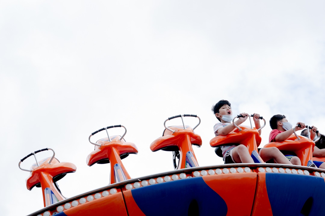 Beth Corbin, left, from Middletown, rides a carousel with her daughter, Madeline, 7, on Wednesday at Lake Compounce. “We try to do as much outside of the house as we can,” Corbin said. “With all the precautions, they are making us feel very comfortable coming. And the fact that it’s mostly outdoors.” Credit: Yehyun Kim / CT Mirror Beth Corbin, left, from Middletown, rides a carousel with her daughter, Madeline, 7, on Wednesday at Lake Compounce. “We try to do as much outside of the house as we can,” Corbin said. “With all the precautions, they are making us feel very comfortable coming. And the fact that it’s mostly outdoors.” Credit: Yehyun Kim / CT MirrorA sanitizing station is installed at Lake Compounce on Wednesday. The amusement park opened to season pass holders on July 1 and will open to the public on Monday, July 6. Credit: Yehyun Kim / CT MirrorBlessing Clarkson, 8, measures her height to make sure that she can get on a ride Wednesday at Lake Compounce. Face coverings are required for everyone except children under three. Credit: Yehyun Kim / CT MirrorGuests are required to RSVP for the day they wish to visit and have to pre-purchase a ticket or season pass online. Credit: Yehyun Kim / CT MirrorVisitors wait for a ferris wheel while social distancing at Lake Compounce. Some rides that necessitate close contact, such as bumper cars, were closed. Credit: Yehyun Kim / CT MirrorAdam Almendral, 11, from the Bronx, enjoys a ride on Wednesday at Lake Compounce. His family, which includes four children, comes to the park every year as a family tradition. Credit: Yehyun Kim / CT Mirror