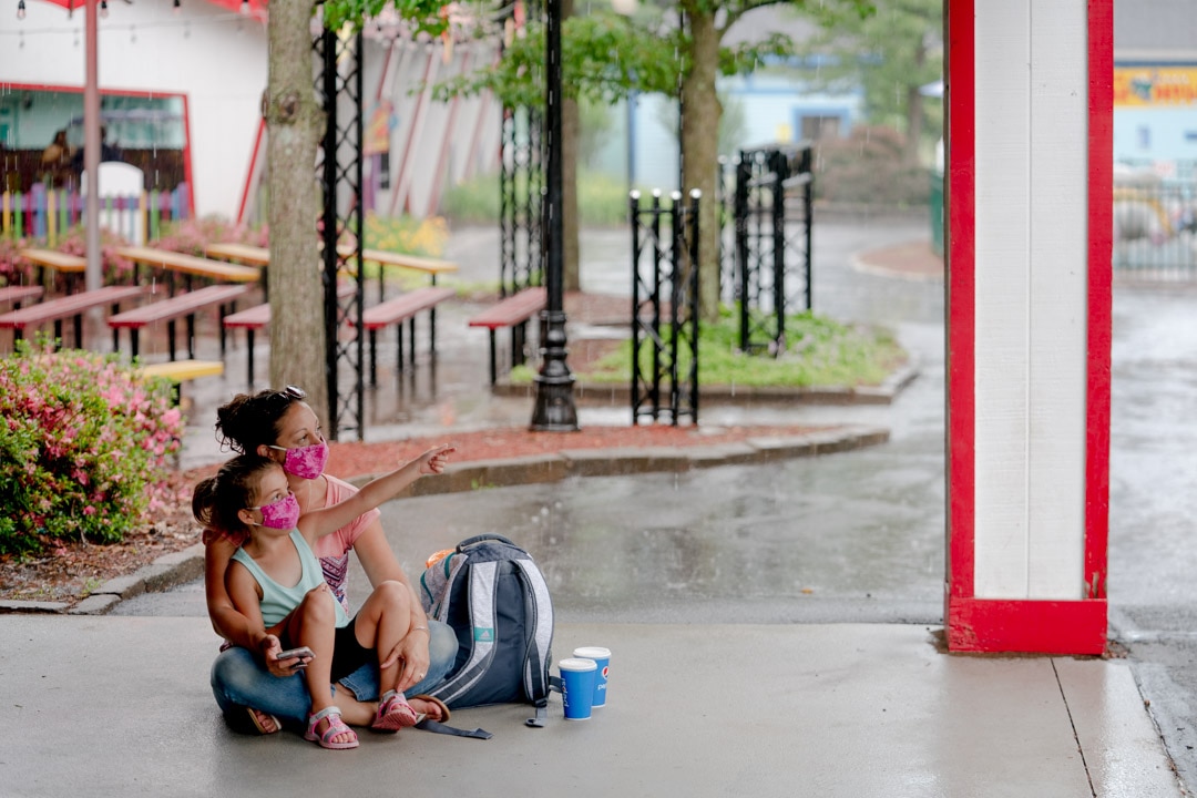 Baez, of Meriden, said she felt safe after reading about the park’s sanitation and distancing protocols, so she booked a season pass online and packed masks and raincoats. After giving birth during a pandemic, a little rain didn’t sway her.