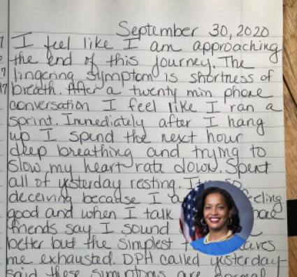 Rep. Jahana Hayes, who announced she tested positive for COVID-19 nine days ago, wrote in her diary on Wednesday “I feel that I am approaching the end of this journey.”