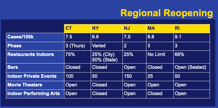 Lamont noted that consumer confidence in dining and attending indoor events would not necessarily return as restrictions eased.