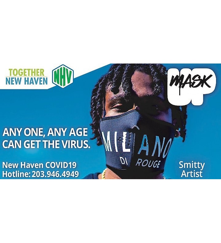 This spring, the city launched a “Mask Up” campaign, with billboards stationed around the city showing prominent locals (like Smitty, above) sporting masks.