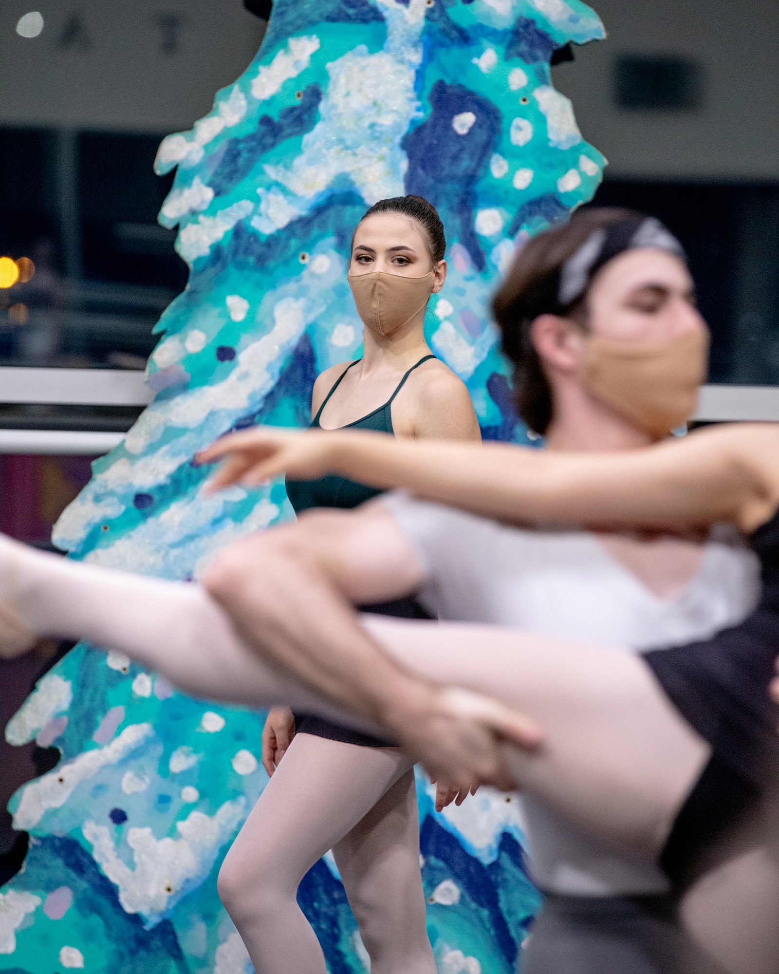 The Nutcracker, a 40-year-old holiday tradition of the Nutmeg Ballet Conservatory, continued this year with live-streamed and pre-recorded shows. Above, students at the conservatory rehearse before the performance. Everyone wore masks throughout the rehearsal and the performance.