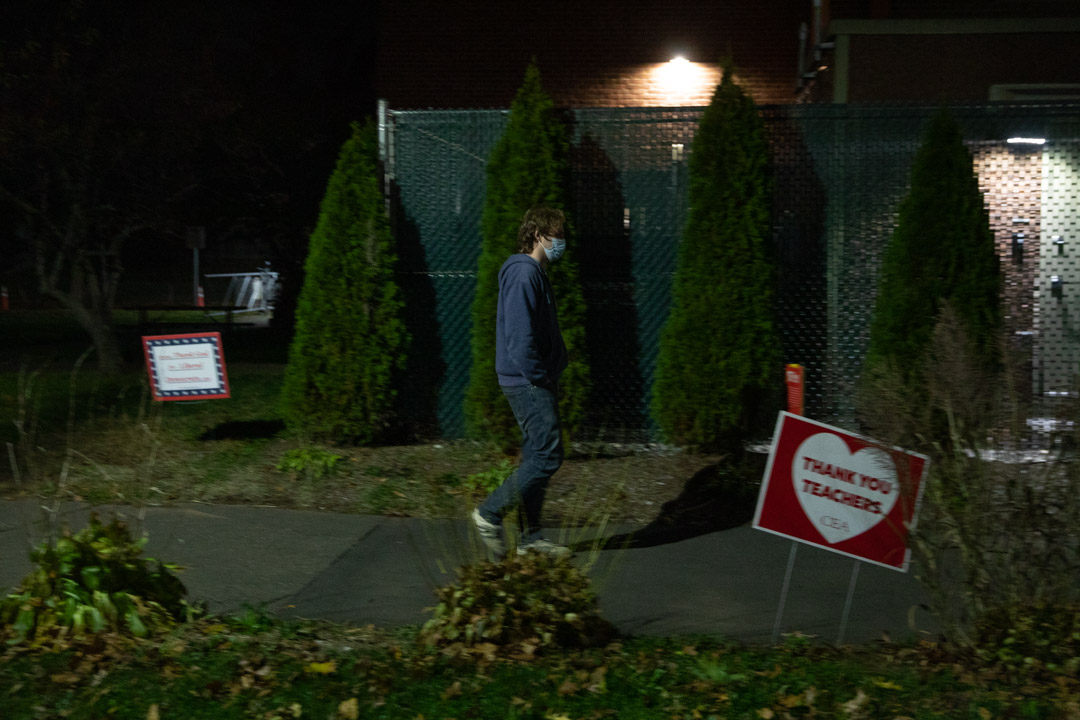 A person heads to vote in North Haven.