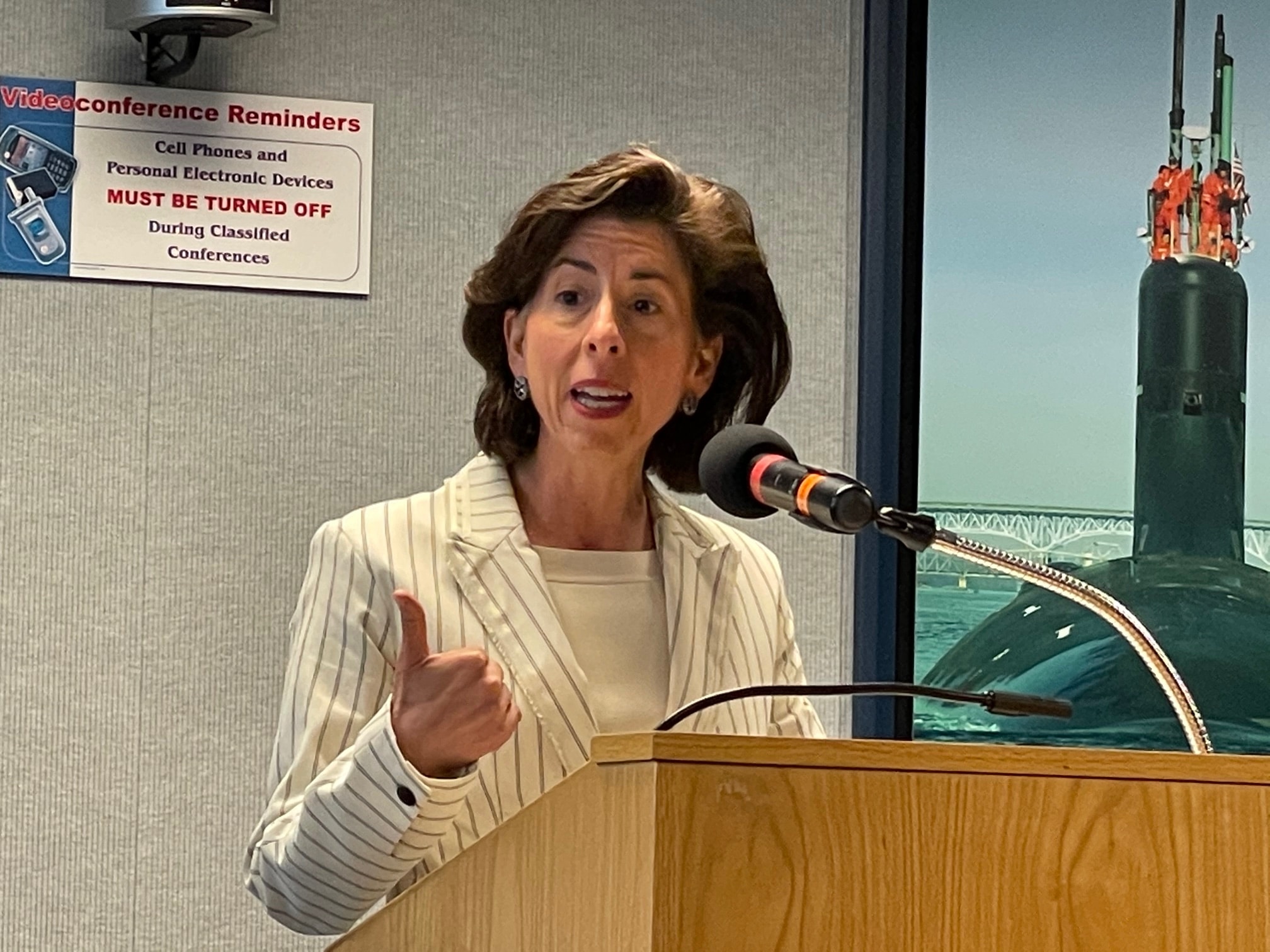 Kevin Graney, the EB president, welcoming, from the left, Rep. Rosa DeLauro, Sen. Richard Blumenthal, Secretary Gina Raimondo, Secretary Martin Walsh, Gov. Ned Lamont and Rep. Joe Courtney.The Lamont administration has focused on how to better tie the curricula of technical schools and community colleges to the needs of those employers and provide middle-class jobs.