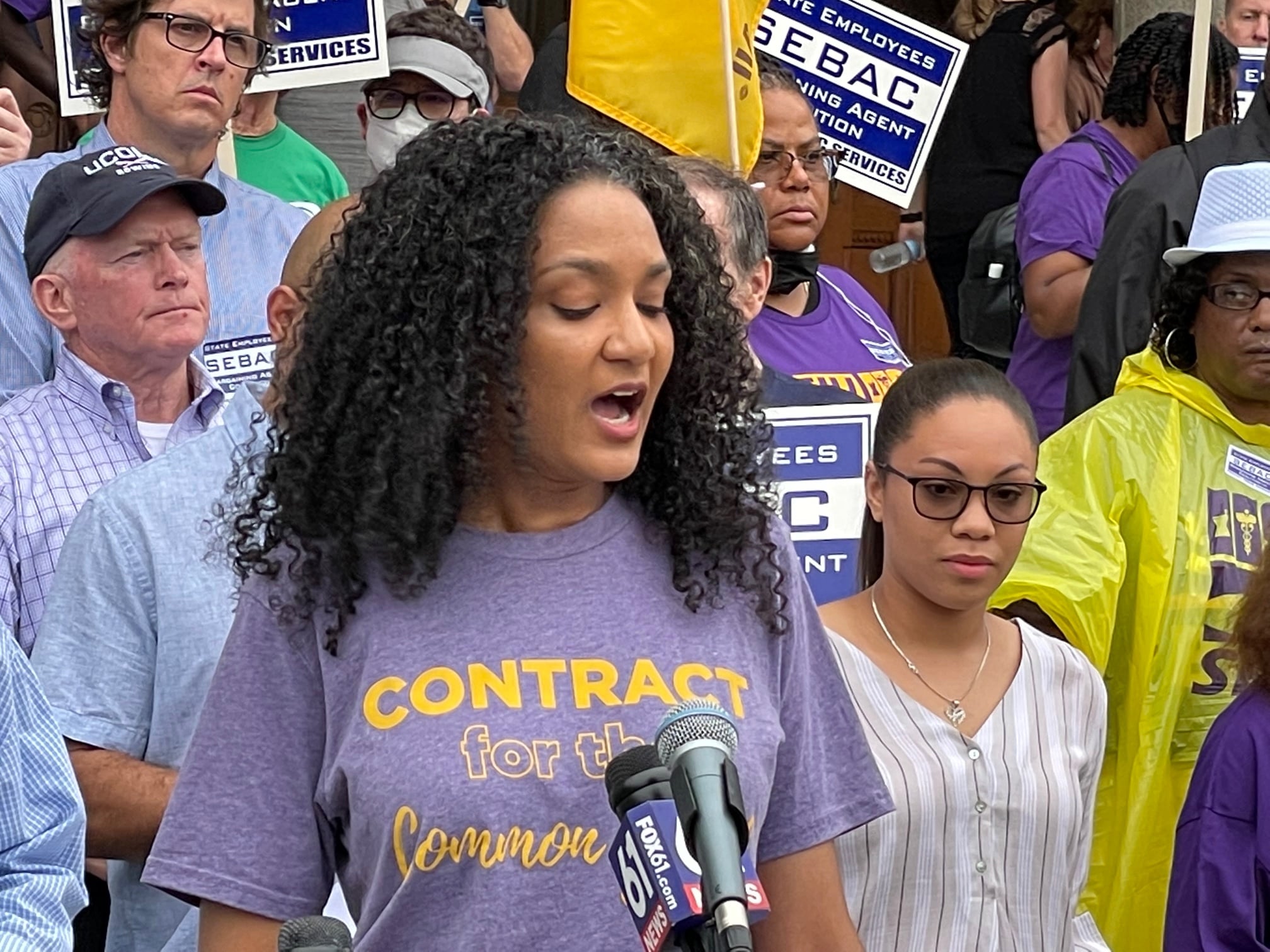 “And how has the state of Connecticut repaid them?” Baril said. “With zero in raises, with zero in respect, with zero in the advances that every working person in the state deserves to be able to provide for themselves and for their families.”