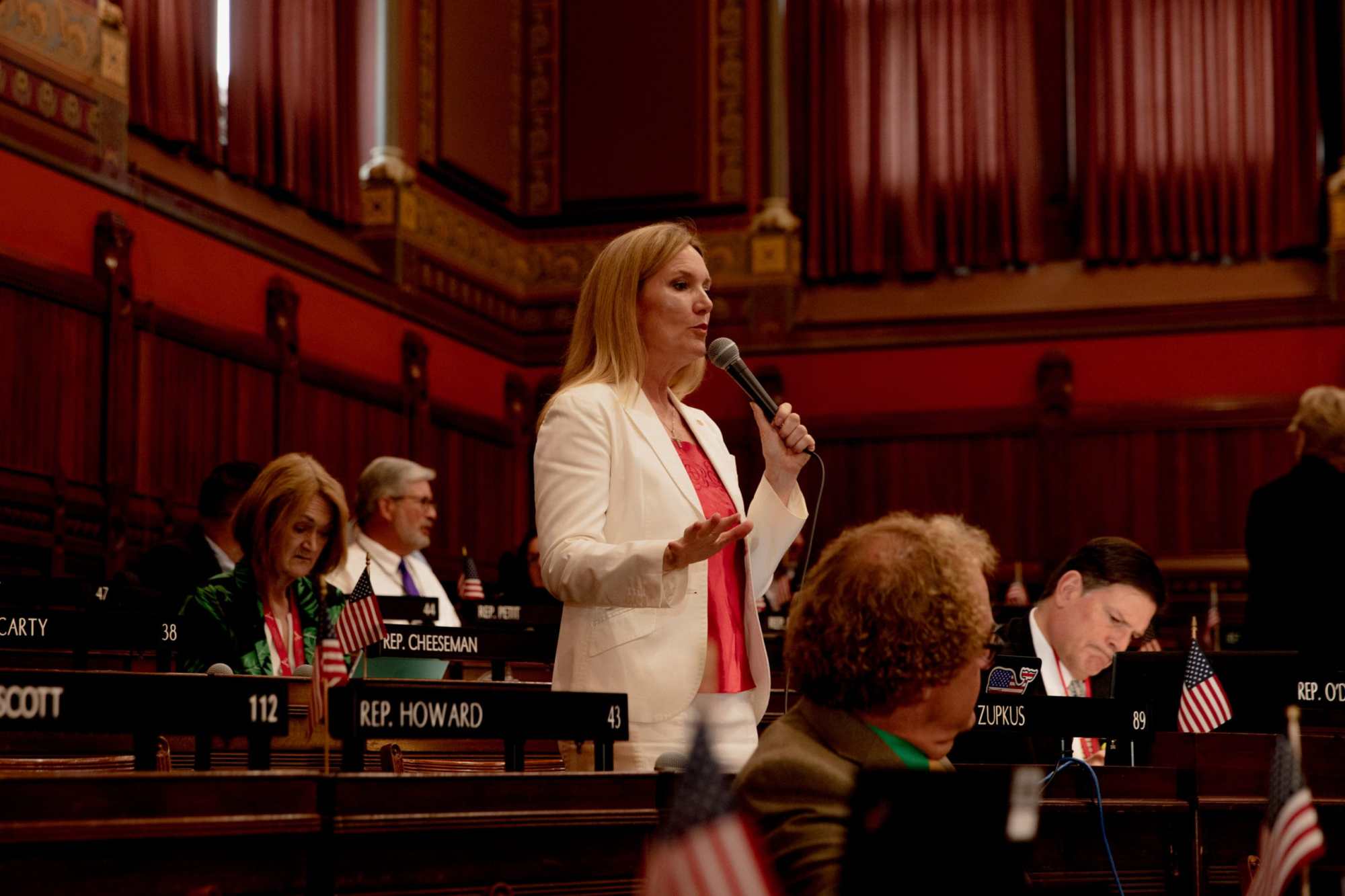 Concurrent debates in the House and Senate took place in a state Capitol that reopened to the public on July 6 yet still limits access to the first floor, where lobbyists gathered in the lobby. The visitor galleries overlooking the House and Senate remained locked.