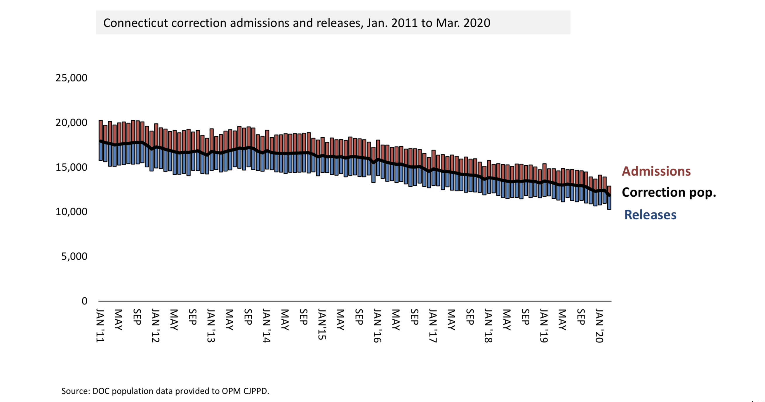 In 2020, the first year of the pandemic, a total of 5,333 sentenced persons were released from Connecticut’s prisons. Of those, 2,763 were released before the end of their sentence. For 2019, the pre-pandemic year, there were a total of 5,685 releases including 2,989 “early” releases (i.e. before the expiration of their court-imposed prison sentence). In other words, significantly fewer, not more, prison releases happened during the 2020 pandemic. The first five months of this year have seen even fewer releases: 3,022 in total with 1,513 “early” compared to the same period in 2020 when there was a total of 5,333 releases including 2,570 “early.”