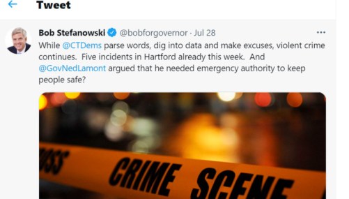 In recent weeks Bob Stefanowski’s nascent campaign for governor seems to have focused on the issue of crime in Connecticut. As someone who has spent the better part of my life doing the same, I was pleased. Over the last few days however his thoughts, as expressed on Twitter and elsewhere, have taken a disappointing turn for the worse.