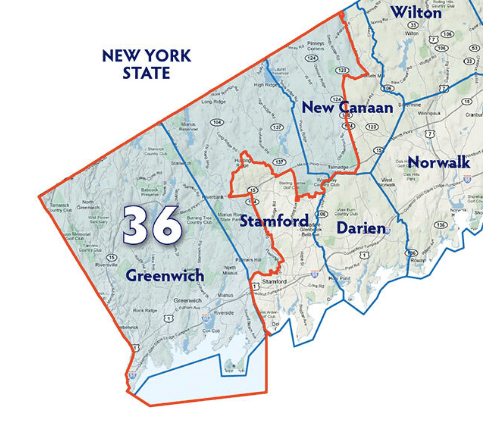 The 36th Senate District covers all of Greenwich and slices of Democratic Stamford and Republican New Canaan to the north and east. All three candidates are from Greenwich, which has 62% of the district’s 66,811 voters. Stamford has 28% and New Canaan 11%.